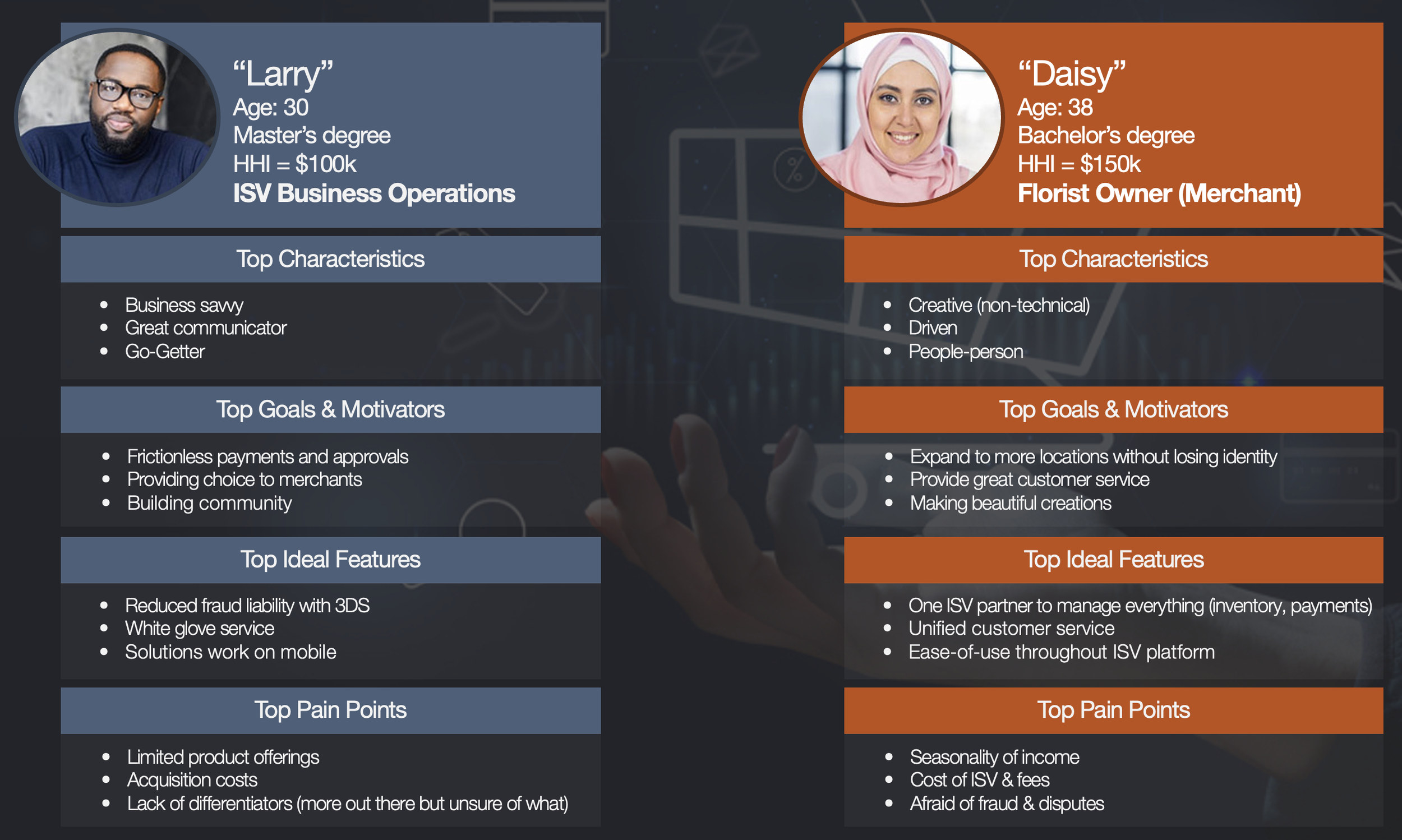 Other players (such as payment gateway providers) that sit in the middle of the above personas)