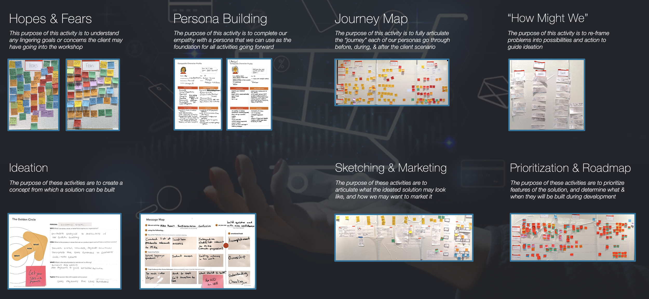Planning all activities of the design thinking workshop such that my team had enough information and visual artifacts to create a functional app and advertisement for the prototype